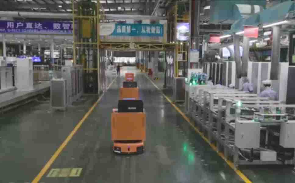 为车载冰箱物流配送打造的智能解决方案,,包含产中物流通过潜伏举升AMR搬运至线边,,,产后成品物流智能仓储,,,流程包含产中物流智能齐套入库,,,线边安灯叫料AMR智能配送至线边,,成品入库、、出库,,,,通过无人堆高车机器人,,智能仓储管理替代人工作业管理,,实现更高存储、、更高效率、、、更具柔性化的解决方案。。。。