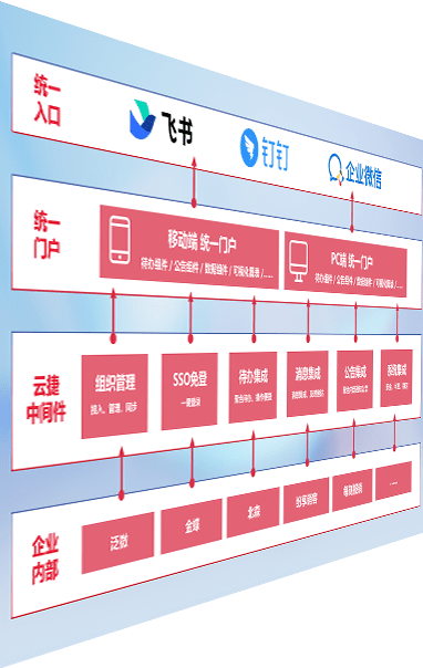 对协作平台提供支持服务,,支持企业应用与协作平台对接,,,,包含组织同步、、、消息集成、、、待办集成等。。。支持目前主流的协作平台:钉钉、、、企微和飞书。。。